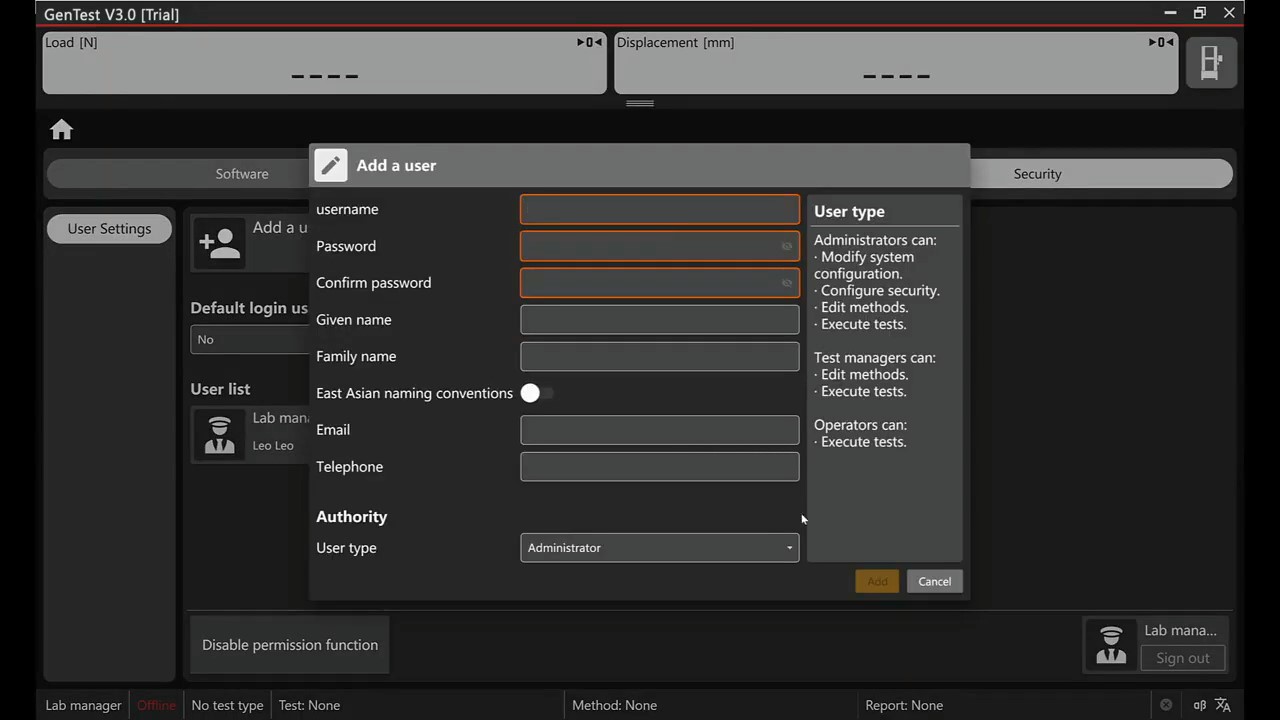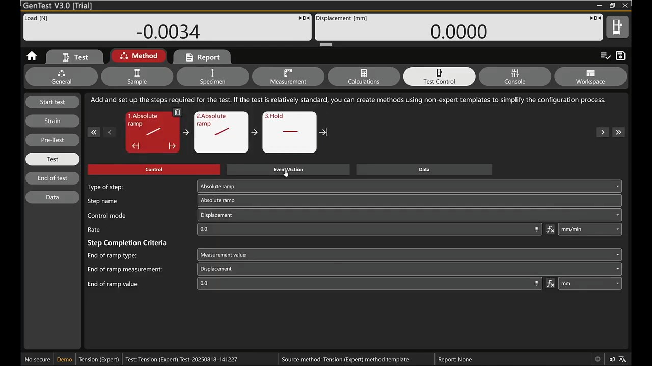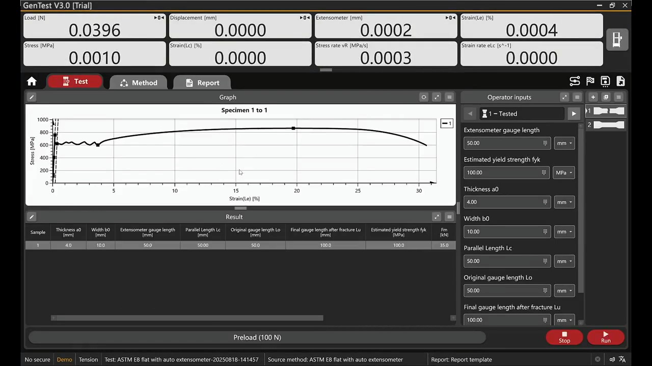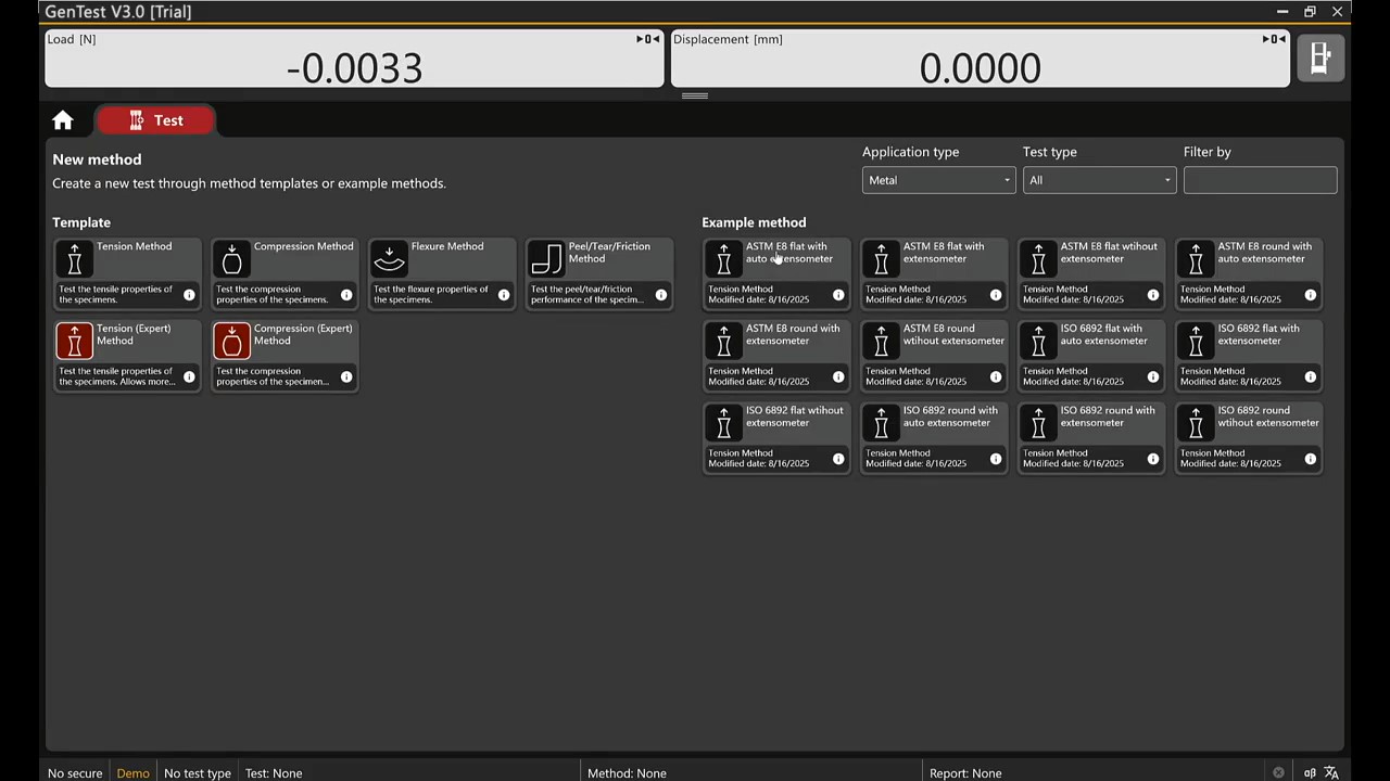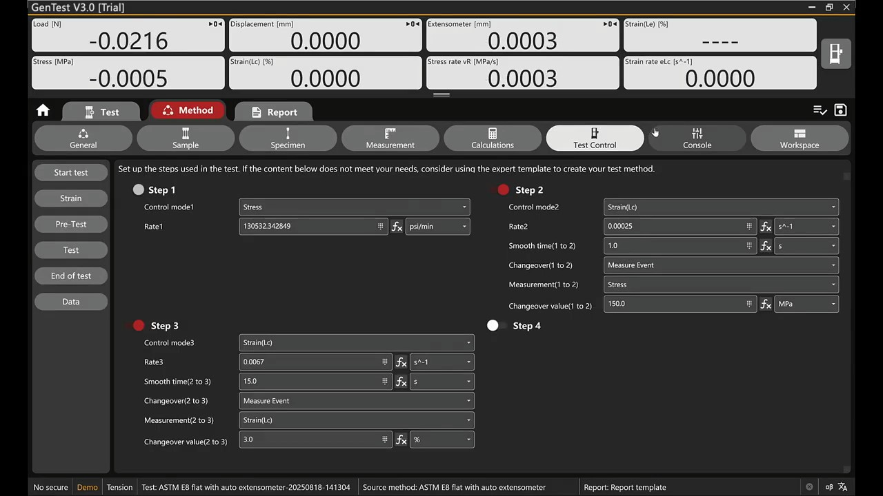 It is a powerful testing software supporting four different load cells and eight different extensometers measuring. It supports clip-on extensometer, large travel extensometer, video extensometer, etc.